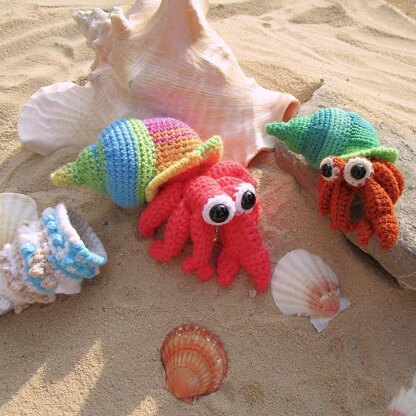 This cute Hermie Crabbie can't make up its mind which Shell to choose! Make a colorful collection of fun shells. Great for using up favorite yarn left-overs!