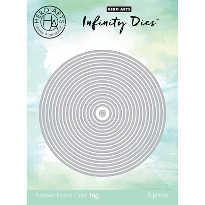 Hero Art-Infinity Dies. These precision-etched metal dies create perfect cut-outs! Compatible with most die-cutting machines (sold separately). This package contains Circle: eighteen dies measuring between 1/8x1/8 inches and 4-1/2x4-1/2 inches. Imported.