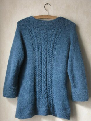 Measurements: Length neckline to hem = 23½” (24”, 24½”, 25”, 25½”, 26”, 26½”). Around sleeve = 12” (13”, 14”, 15”, 16”, 17”, 18”) Across back (armpit to armpit) = 16” (17”, 18”, 19”, 20” 21”, 22”). Sleeve length: 14” (14”, 14”, 15”, 15”, 16”, 16”)