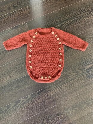 Söt och lätt stickad romper med knäppning på båda sidor på framstycket.