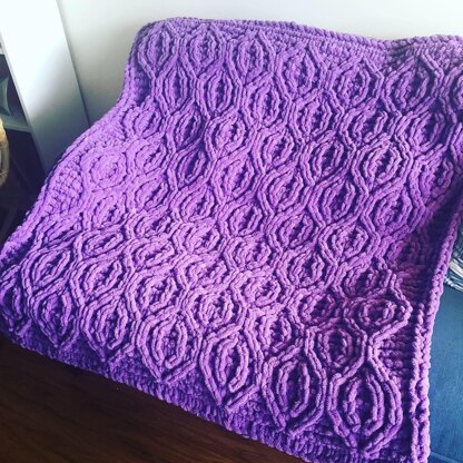 THIS IS A LOOP YARN FINGER-KNITTING PATTERN. The Hexagon Tile Blanket is a repeating pattern of interlocking hexagon tiles - the perfect design to complement mid-century modern decor. NOTE: While this pattern is written for Alize Puffy yarn, UK knitters can substitute Bernat Alize Blanket-EZ yarn for a blanket of approximately the same size - you will only need 5 skeins.