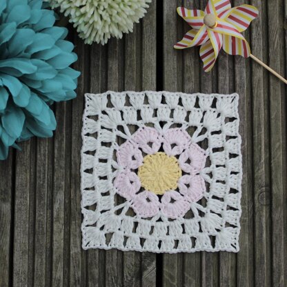 Easy to make lacy flower granny square would be a great addition to any blanket or pillowcase.
