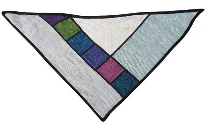 High Street Shawl borrows many of the same techniques found in Eden Prairie, but with a different result. High Street is a garter stitch modular shawl in three to ten colors of fingering weight yarn. This is a great pattern for stash busting since the first six colors require 25 yards or less. You can probably find these in your stash. What more can you ask for? A fun knit, fairly quick and easy, no purling, and it busts some stash! YARN INFORMATION: Madelinetosh Tosh Merino Light, 100% superwash merino, 420 yards per skein, 25 yards each of Cousteau (C1), Ruby Slippers (C2), Iris (C3), Baltic (C4), Jade (C5), 13 yards Flashdance (C6), 190 yards Celadon (C7), 120 yards Antler (C8), 230 yards Silver Fox (C9) and 185 yards Onyx (BC).