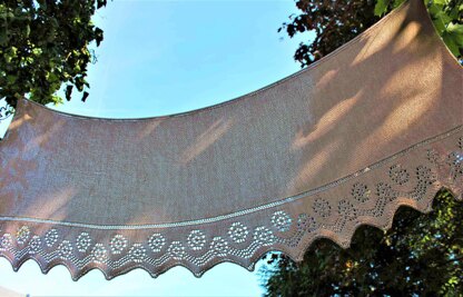 Hilfrida is a crescent shaped shawl of scarf that will drape gracefully around the shoulders.