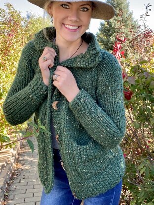 Want a quick knit, wear anywhere sweater?! This is the MUST HAVE cardigan. Inspired by the gorgeous scenic drives in the Black Hills, the Hills & Stone Cardigan is a chunky, quick knit that is comfy for driving and touring. This rustic and stylish cardigan is perfect as a layering piece or wearing as a jacket, and features a raglan design with a textured collar, cuffs and hemline. Choose between mid-fit or long length, pockets and/or buttons! This may be customized to perfection! Written and color-coded for sizes XS, S, M, L, XL, 2XL, 3XL, 4XL, 5XL.*** Sizes XS ~30-32” - (36”) S ~ 33-35” - (39”) M ~ 36-38” - (42”) L ~ 39-41” - (44”) XL ~ 42-45” - (49”) 2XL ~ 46-49” - (52”) 3XL ~50-54” - (56”) 4XL ~55-58” - (62”) 5XL~59-62” - (66”) Fits bust sizes _-_” with 4-6” positive ease, (flat measurement after blocking)