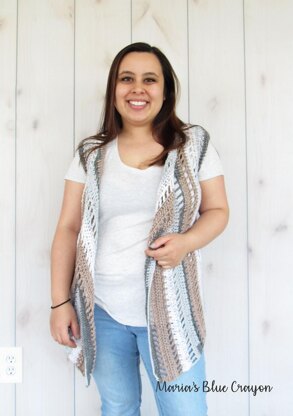 This vest is very easy to make consisting of only 3 large rectangles and sewn together!
