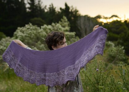 Knit top down, this shawl is all about sumptuous squishy texture. Broken rib effortlessly flows into a two colour brioche with simple shaping for a lovely invert scallop edge. Short row shaping in the broken rib section creates a perfect crescent shape making this shawl so incredibly versatile to wear.