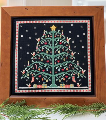 A gorgeous Christmas design stitched on black aida. The design oozes Christmas cheer with the white stitches popping out of the material. This will be an amazing Christmas decoration for years to come.