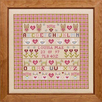 Historical Sampler Company Owl & The Pussycat Birth Sampler Cross Stitch Kit - 31cm x 35cm