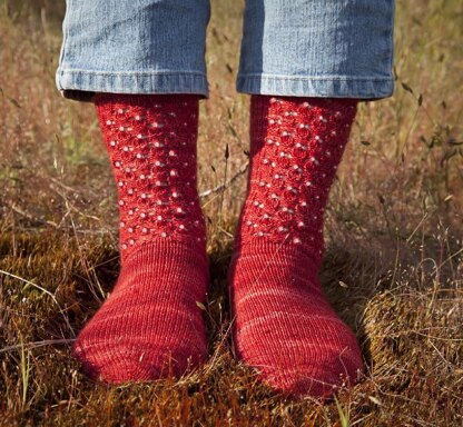 These socks are the fifth sock featured in my eBook, Cat’s Sweet Tomato Heel Socks. You may buy the patterns as singles for $6 each, or for $20 you can buy the whole eBook and will receive all 9 designs (the 9th sock is exclusive to the eBook, not to be released as a single). To learn more before purchasing, watch my video: http://tinyurl.com/4x4xmp2