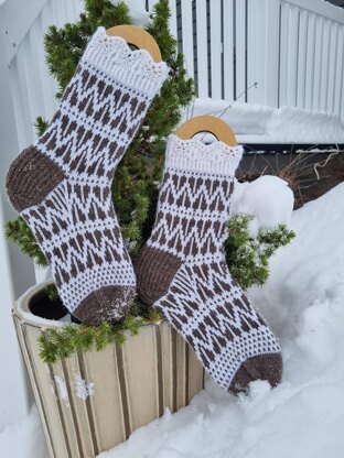 Split heart socks with a cute lace border. If you want you can do k1-p1 ribbing instead.