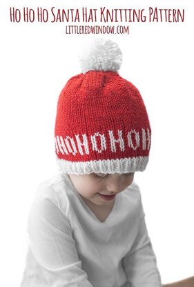 This adorable Ho Ho Ho Santa Hat Knitting Pattern is such a fun knitting pattern for Christmas! The easy to print pdf pattern includes instructions for all four sizes and instructional photos! This adorable baby hat knitting pattern is knit in the round and does require basic knowledge of stranded or fair isle knitting techniques (knitting with more than one color at a time) but it's an easy pattern and great for practicing your colorwork. Your little Santa will look so cute in this adorable Ho Ho Ho hat, knit one up for your yearly holiday photos!