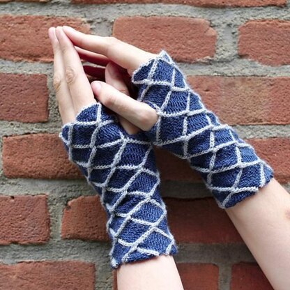 These mitts are made with a summery, light lace yarn. The subtle cables worked around an Entrelac pattern and keep the crochet interesting. The ribbed pattern across the palm makes the mitts fitted yet supple. The mitts are crocheted using slip stitches and incorporate horizontal cables, a technique I invented. Many thanks to Caitlin for the name, she said the cables reminded her of holding hands!