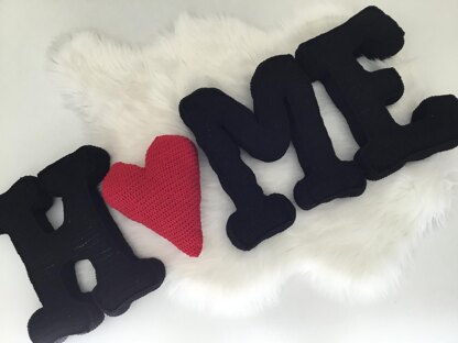 Pattern includes four letters H, O, M, E and heart decoration. The lenght of each letter is about 12”/30 cm and the width of the letters all together is about 38”/96 cm.