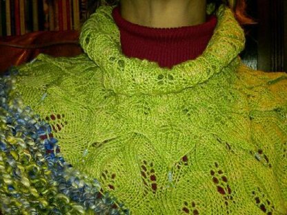 Wear the cowl in what would appear to be "inside out" so that the leaf tips show. You can see from the close up that the lower edge is actually the leaves inside out