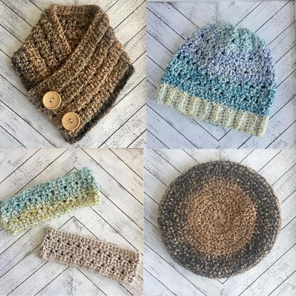 It includes: Adult size beanie pattern Adult size beret pattern Adult size cowl pattern Adult size headband pattern (only available in the pattern pack)