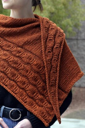 • HONEY RYE is a cozy, snuggly triangle shawl, featuring a narrow ribbed base, beautiful cables, ever classic Stockinette stitch and textured edges. • HONEY RYE is worked side by side with two strands of yarn held together. • This design is totally inspired by nature, countryside quietness and this beautiful yarn.