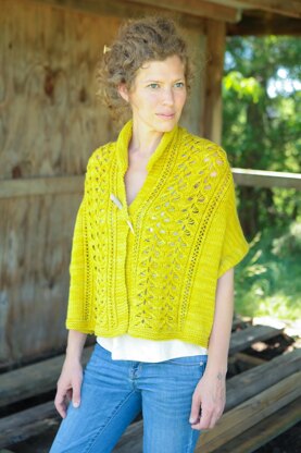 Yarn:Manos Del Uruguay Maxima Spirulina 876 (920, 980) yards Needles: US 8 long circulars Gauge: 8 sts and 12 rows = 2” Notions: Darning needle, stitch markers Techniques: blco, CO, K, P, YO, K2tog, SSK, P2tog, p2tog-b, mattress stitch Sizes: S (M, L)