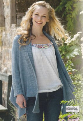 This is a pattern for a honeycomb edge draped cardigan, originally published in Knit Today. It is a simple flattering shape with a textured honeycomb edging on the front bands and cuffs. The main part back and fronts are knitted in one piece with openings for the sleeves, and the sleeves knitted separately. Photos Knit Today.
