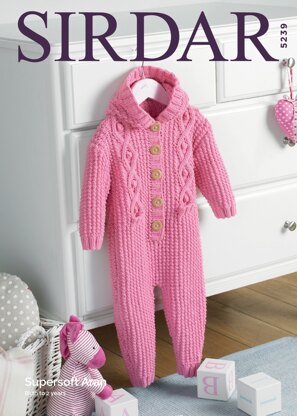 Hooded All-In-One in Sirdar Supersoft Aran - 5239 - Downloadable PDF is a Intermediate Knitting pattern by Sirdar , available as a Downloadable PDF and includes instructions in English. Super fun to make, this pattern could be your next masterpiece!