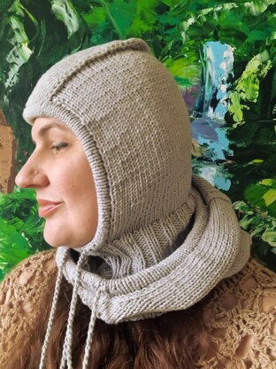 This is going to be your all-time favorite cozy winter headwear! It is comfortable, it is warm, it is cozy, and you can adjust how toasty you would like it to be, and it is made in one piece. It is a hood and a balaclava, two in one.