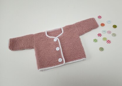 Another cardigan to add to my prem baby collection. Fastening right the way down the front it's unisex in style. The contrast trim finishes it off beautifully but can be done in matching yarn if preferred.