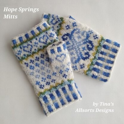 Designed to compliment my Hope Springs Hat and Cowl, these fingerless mitts can be made in two lengths.