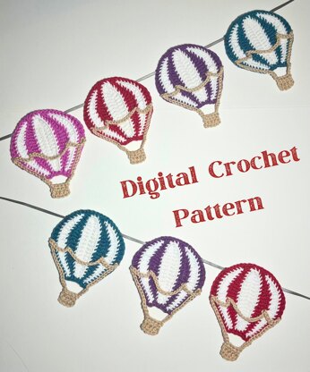 This hot air balloon bunting is a fun and unique way to brighten up any space. This pattern is written in English with US crochet terms, and has step by step instructions with pictures throughout. I recommend using a 3mm crochet hook and DK weight yarn for this pattern.