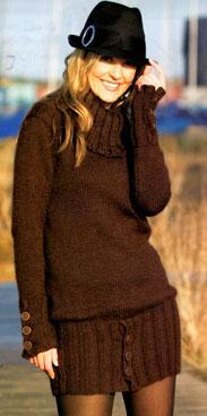 A useful dress/tunic for when the weather turns cooler. You can make it any length you like but remember to buy extra yarn if you want it longer