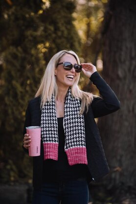 The classic houndstooth pattern gets an update with a pop of color in this modern scarf. Two options are provided: (1) knit it in a tube in the round so all the floats are hidden, or (2) knit it flat and add a sweet lining to cover the back side. (instructions for adding optional lining are included). Either way you’ll have a lovely piece, for yourself or for gift giving.