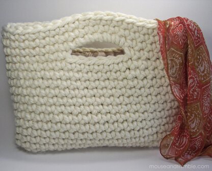 Tote what you need in this oversize clutch purse. Hold a few basic essentials or carry your notebook or tablet nested in soft chunky stitches. Two handle, seamless construction, crocheted in a continuous spiral with basic stitches. A quick & easy bag to make in super bulky yarn. Beginner-friendly format + abbreviation key with descriptions. Photos will show exactly where to place your hook & stitches, how to decrease, and join new yarn in the round. Note: Instructions to add a lining are not included. Bag is soft and lays flat when empty.