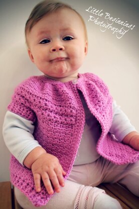 Due to the full-body, slightly swing-style of this cardigan, it will fit baby from birth to 24 mos. Finished chest measurement is approx. 22". Finished length of the sample cardigan was 10.5", but you may opt to make it longer if you wish (for baby closer to 24 mos.) If you want to make toddler size, you could use worsted weight yarn and a larger hook to increase the size.