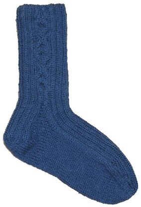 This great sock matches my Hugs and Kisses Gauntlets. It has a cabled x's and o's pattern running up the outside ankle area of each sock. This is not a particularly difficult sock to knit; but, it helps if you have knitted socks before. This is a top down sock. You will need to know how to knit in the round and it's helpful if you've cabled before.