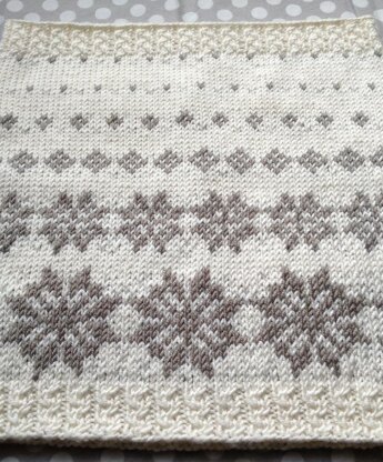 Hush is a stranded colorwork cowl that mimics the gentle falling of snowflakes and the peaceful quiet it creates. Hush features tiny braided cables as ribbing, adding a touch of delicate detail.