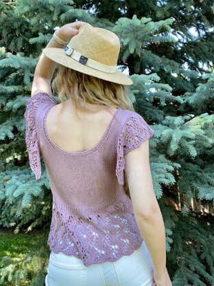 It is recommended that this pattern is knit in cotton, bamboo or other plant fiber/plant fiber blends for an accurate drape.