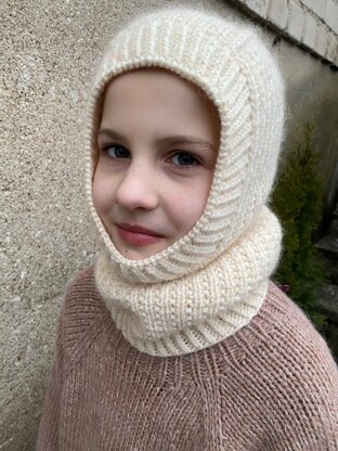 I KNIT BALACLAVA is a knit in which hat and scarf are combined into one piece. It is a short and quick project worked bottom to top that can be finished over the weekend. A pearl rib stitch pattern is used to work this balaclava. I KNIT BALACLAVA is a warm and cozy knit suited to wear for the winter season without a scarf.