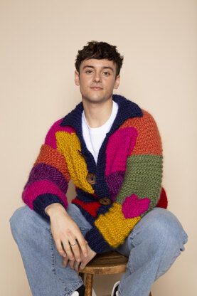 A bold statement piece that will brighten up any outfit. The cardigan has a slouchy, oversized fit with drop shoulders, funnel neck, patch pockets and oversized coconut shell buttons.