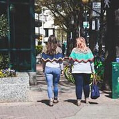 I have been fortunate to attend the Virginia Beach Yarn Getaway retreat the last 2 winters. Looking out on the winter beach scene fills a knitter with a sense of wonder and beauty, but winter in Virginia can be cold and windy, so having a little poncho for your shoulders like this one is just the thing. Hence, Pontini! The colorful yoke design on this poncho evokes beautiful stranded colorwork but is really simple-to-knit stripes with stacking increases and decreases, making it perfect for knitting away the hours at a retreat, at home in your pajamas or out with your local knitting group.