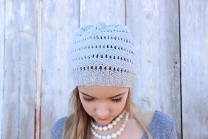 I designed this pattern after a late winter snow was followed by an ice storm. Tiny ice pellets covered the ground and capped over the deep snow. When my kids walked over the ice, it crunched and broke through to the powdery snow below, leaving hollow holes on the surface. The contrasts of hard and soft, multiple icy textures and footprint motives game me the inspiration for this hat.