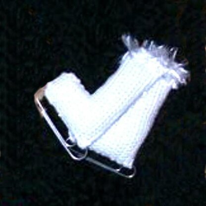 Supplies: size 3 steel crochet hook, about 20 yards of size 10 white cotton crochet; two-2 inch paper clips, needle and thread, small amount of Bernat Boa Nouveau, small amount of polyester fiberfill.