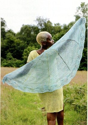 This pretty shawl is knit in a vegan friendly yarn, which amazingly, is made from recycled wood pulp. Five sections of stocking stitch are separated by yarn over increases, leading to a pretty lace border.