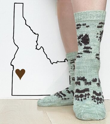 Did you know that Idaho relocated beavers by dropping them out of airplanes with parachutes? Besides beavers, Idaho has an abundance of wildlife! This sock shows off just a couple of their tracks.