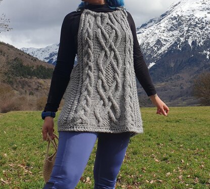 This is a digital pattern for knitting a lovely rustic, oversized & chunky slip over vest with a racer back, featuring Celtic cables and a dashing, Viking look.