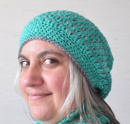 Play with color and texture in with this slouchy hat that coordinates with the In the Neighborhood Keyhole Scarf.
