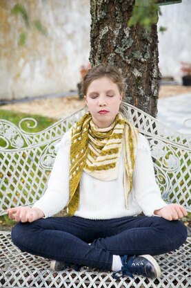 ConstructionThis shawl has a triangular shape starting from one edge to the other. Its shape is created with German Short Rows.