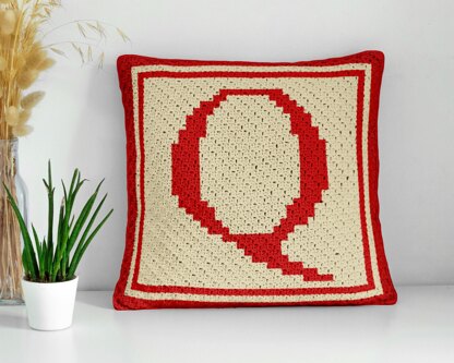 Initial Letter Q Pillow Mini C2C Crochet Pattern Alphabet Name Bordered Cushion
