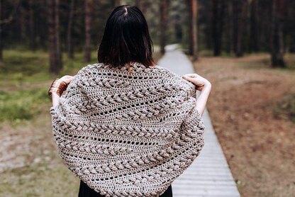 Wrap yourself in this cozy goodness! Beautiful puff stitch braids align in breath taking short rows.