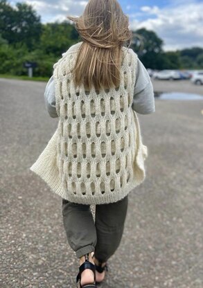 The Inside-Out Vest is easy to knit- the knitting pattern is almost seamless (just shoulders are joined together). The vest is worked beginning at the hem, bottom up flat in rows. Using Drops Air, or any preferable aran weight yarn, this simple design is knitted using basic stitches. Both sides of the vest are wearable! The pattern for the vest contains written instructions.