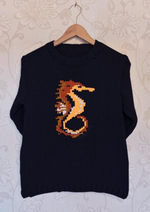 The pattern comes with written knitting instructions for Chunky sweater 28" to 54" and the Seahorse chart. The chart can be used with any INSTARSIA pattern. Check my Instarsia designer profile for all patterns and chart.