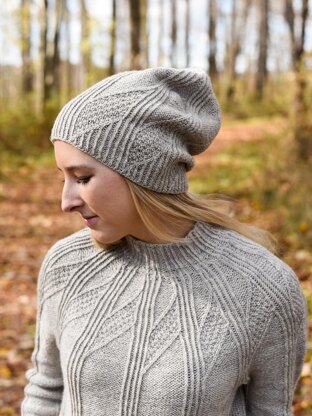 Strong lines carve a stunning pattern from peak to hem on this unisex cap in six sizes (XXS to XL). Worked in the round from the top down, it does double-duty as a swatch for the Interlaken Pullover! Twisted stitches really make the textures pop. Designed to work with a wide variety of heavy sport or light DK yarns.
